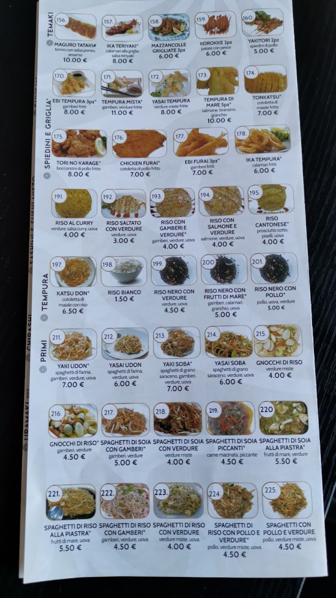 Typical highlights include selections like sashimi misto, nigiri al salmone, tempura, and traditional spring rolls. These items work well for a shared meal with friends or a quiet evening out, complementing the restaurant’s spacious and inviting atmosphere.